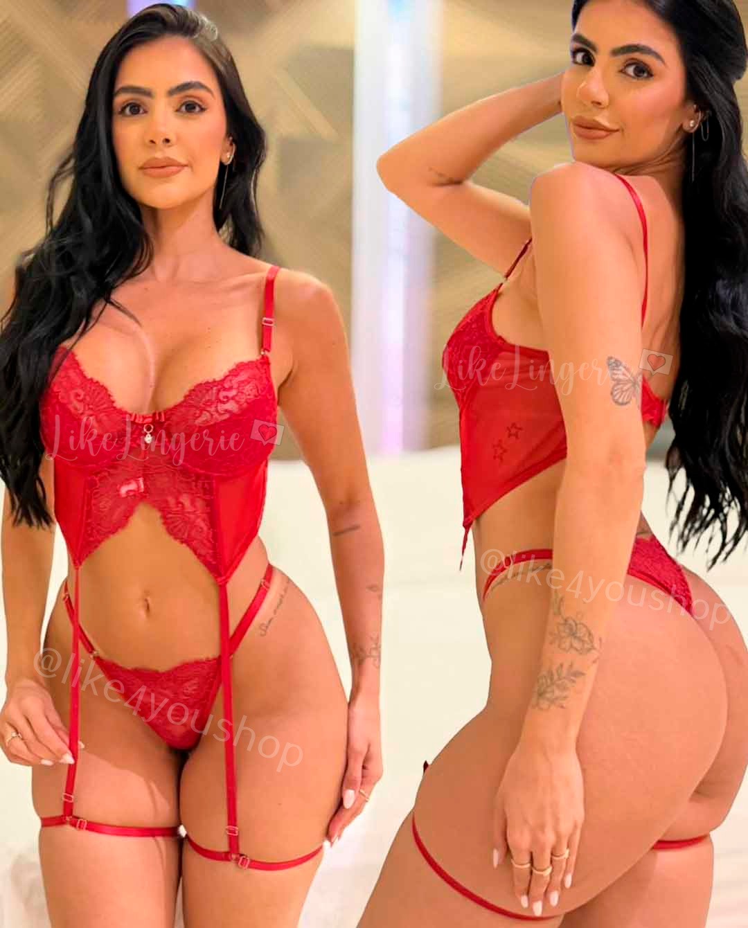 – Calcinha Fio Dental com cinta liga e regulagem de tamanho.