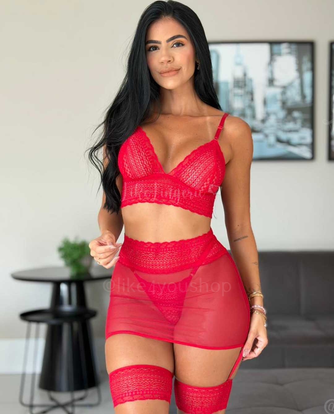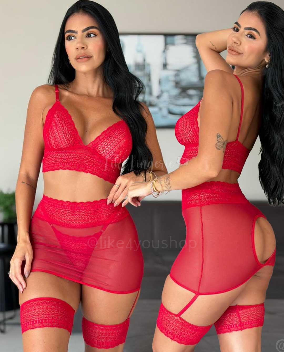 Conjunto Sensual Saia e Cinta Liga Alicia